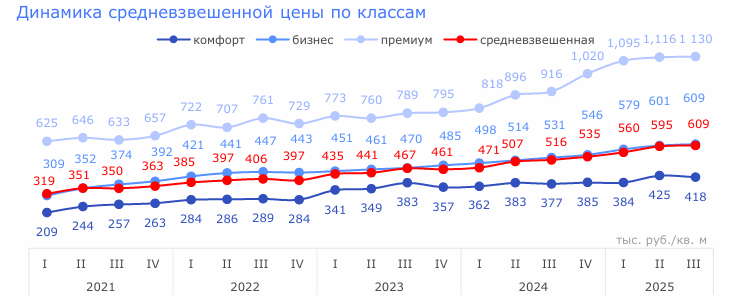 В 2024–2025 гг. бизнес на жилой недвижимости сместился в сторону премиум-класса, где нет зависимости от ипотеки и кредитных программ (как в эконом- и комфорт-сегментах). По мнению экспертов, в 2026 году тенденция сохранится.