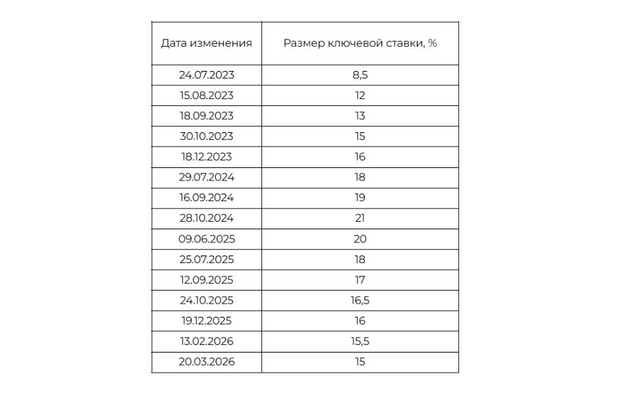 Высокое значение ключевой ставки было установлено Центробанком 28 февраля 2022 года для поддержания ценовой стабильности в новых внешних условиях: ставка была повышена с 9,5% сразу до 20%.