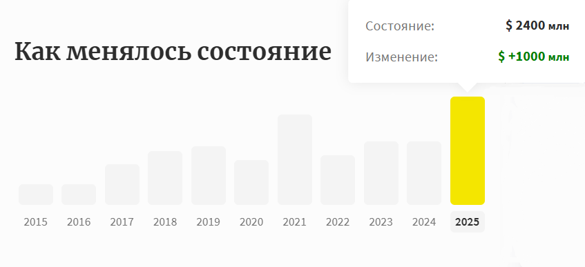 Рыбакову принадлежит 50% акций компании «Технониколь», он отошел от операционного управления. Его состояние оценивается в 2400 млн $.