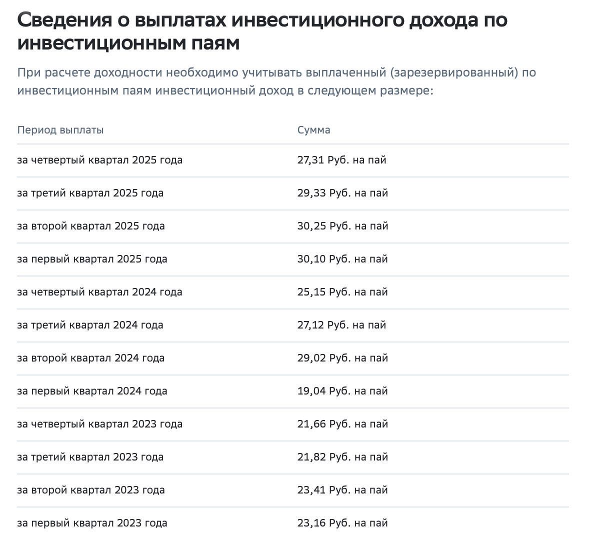 Фонд выплачивает доход с IV квартала 2018 г. За 7+ лет доходность в среднем составляет 8,8% годовых (при цене пая 1 000 ₽).