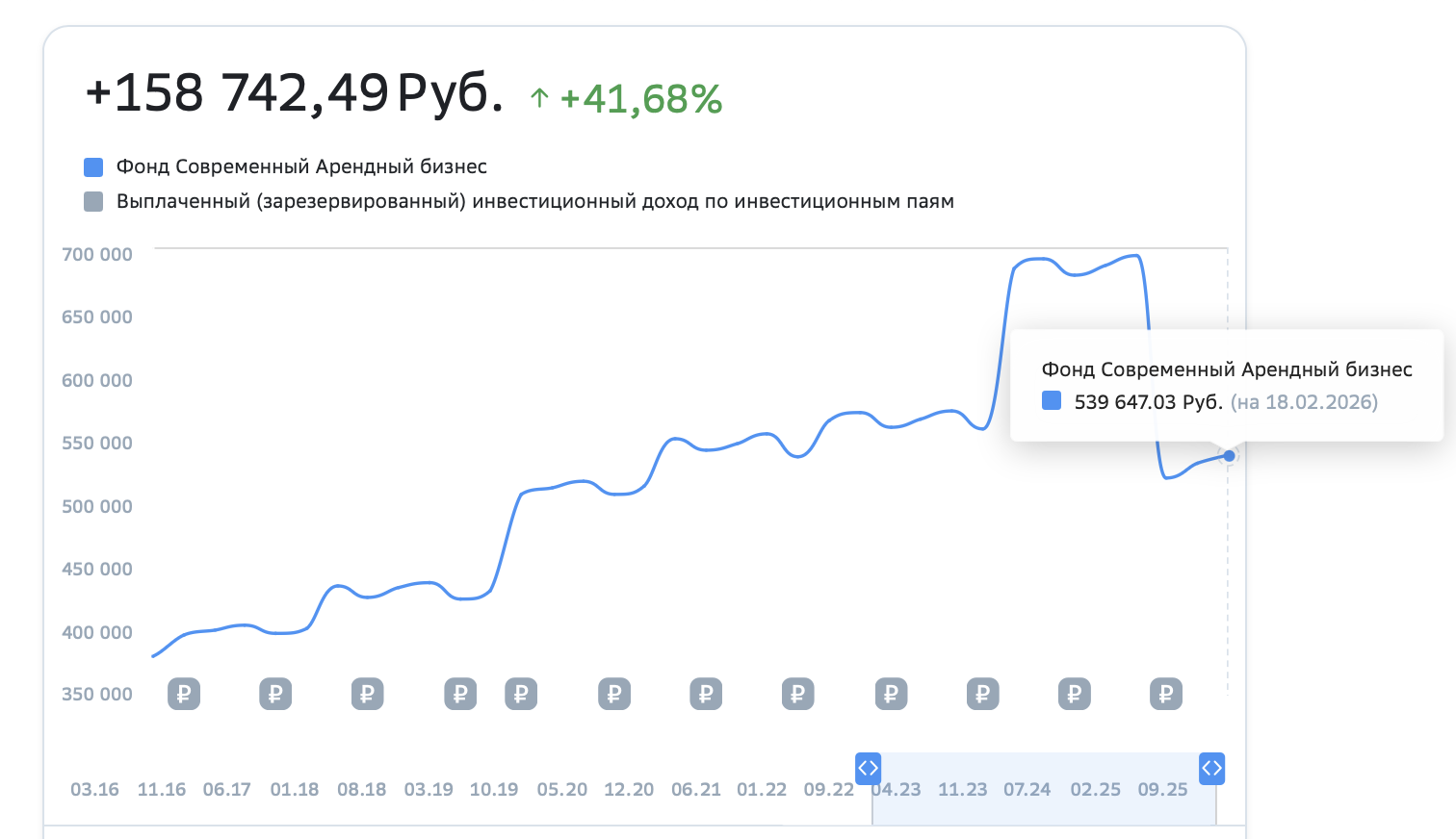 Закрытый паевый инвестиционный фонд недвижимости (ЗПИФН) «Современный Арендный бизнес» сформирован 17 марта 2016 года сроком на 15 лет (до 30 апреля 2031 г.). Однако 18 февраля 2026 года Управляющая компания приняла решение о прекращении данного ЗПИФ недвижимости. Подведем итоги работы фонда.